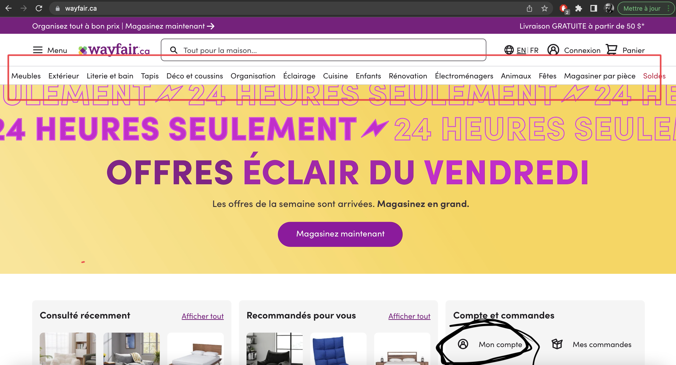 2. Il est commun de placer le signifiant "accès à mon compte" en haut à droite de l'écran